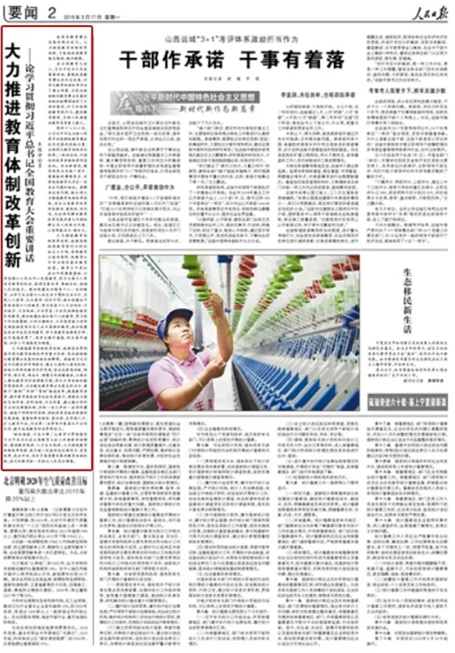 人民日報(bào)評論員:大力推進(jìn)教育體制改革創(chuàng)新