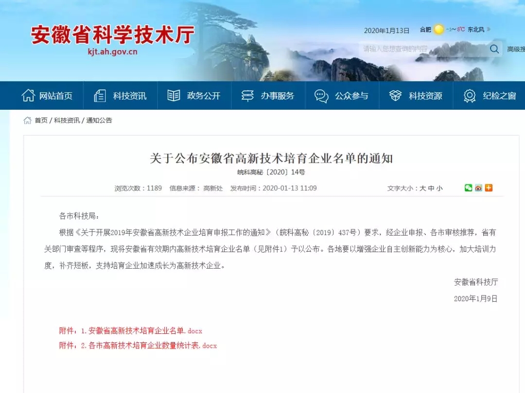 近日,安徽省科技廳公布了2019年度安徽省高新技術(shù)培育企業(yè)名單。據(jù)安徽省科技廳官網(wǎng)消息,2019年度安徽省高新技術(shù)培育企業(yè)經(jīng)過過了企業(yè)申報(bào)、各市審核推薦,省有關(guān)部門審查等程序,全省16個(gè)市共有1417家企業(yè)上榜。心里程控股集團(tuán)旗下兩家子公司——安徽心里程科技有限公司、蚌埠心里程電子科技有限公司位列其中,這是心里程集團(tuán)在安徽投資發(fā)展史上的又一喜事和盛事。