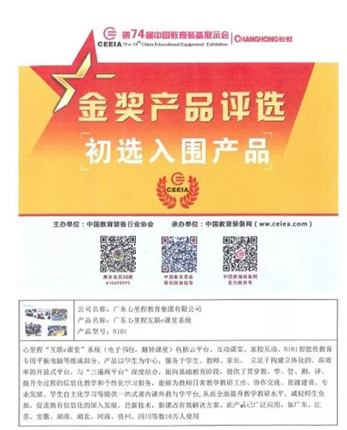 日前,在中國教育裝備行業(yè)協(xié)會組織啟動的第74屆中國教育裝備展會金獎產(chǎn)品評選活動中,心里程教育集團旗下產(chǎn)品——互聯(lián)e課堂成功入圍。