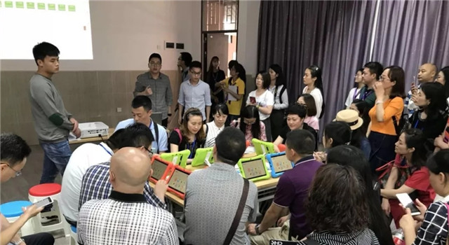 5月7日,成都市武侯區(qū)50人校長團到訪深圳市福田區(qū)福苑小學,考察教育信息化建設。心里程教育集團的工程師們現(xiàn)場為校長們演示“互聯(lián)e課堂”平板電腦的使用方法,并講解特色功能。