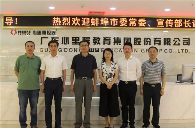 6月28日,安徽省蚌埠市委常委、宣傳部長謝兵,市委常委、副市長郭鵬一行蒞臨心里程集團(tuán)深圳總部考察指導(dǎo),心里程控股集團(tuán)董事長彭國遠(yuǎn)、心里程教育集團(tuán)總裁彭錦環(huán)熱情接待。
