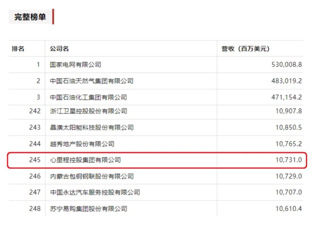 排名第245位!心里程集團(tuán)首登《財(cái)富》中國(guó)500強(qiáng)