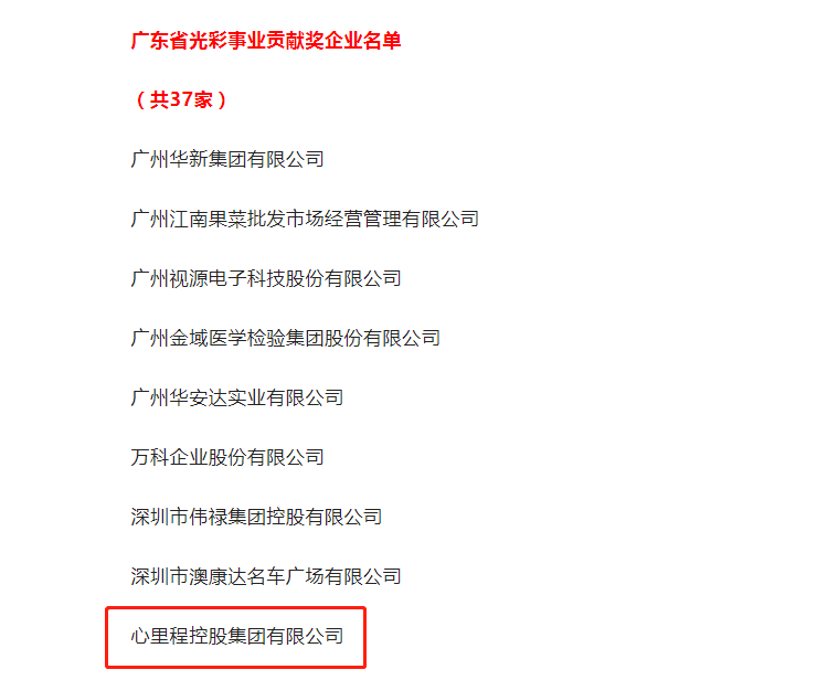 近日,省委、省政府發(fā)布廣東省非公有制經(jīng)濟(jì)人士優(yōu)秀中國特色社會(huì)主義事業(yè)建設(shè)者暨光彩事業(yè)貢獻(xiàn)獎(jiǎng)表彰決定,首次以省委省政府名義表彰“廣東省非公有制經(jīng)濟(jì)人士優(yōu)秀中國特色社會(huì)主義事業(yè)建設(shè)者”和 “廣東省光彩事業(yè)貢獻(xiàn)獎(jiǎng)” 。深圳12名非公有制經(jīng)濟(jì)人士和新的社會(huì)階層人士、6家民營企業(yè)榜上有名。心里程控股集團(tuán)獲評“廣東省光彩事業(yè)貢獻(xiàn)獎(jiǎng)” 。
