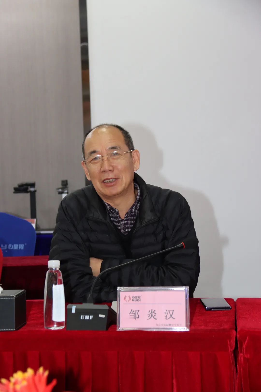 彭錦環(huán)總裁(右一)陪同鄒炎漢校長(右二)參觀心里程集團(tuán)總部