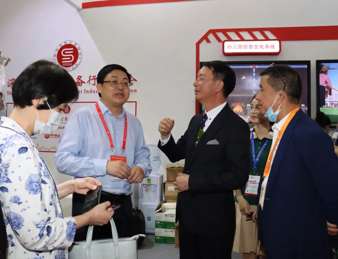 深圳市教育局副局長趙立、巡視員張淶臨、教育信息技術(shù)中心主任張惠敏等領(lǐng)導(dǎo)蒞臨心里程展位參觀指導(dǎo)