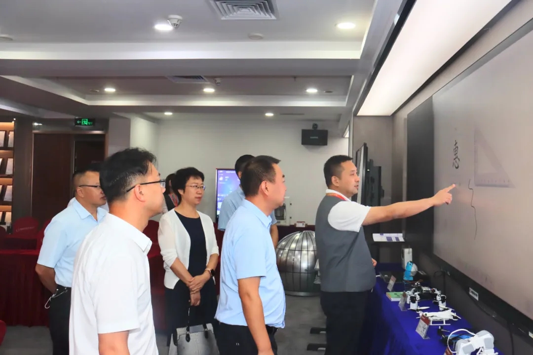投資集團常務(wù)副總裁張玉向考察團一行演示心里程教育信息化產(chǎn)品