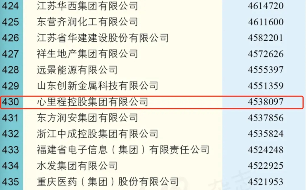 報告顯示,上榜中國企業(yè)500強前三位分別是國家電網(wǎng)、中國石油、中國石化,上榜中國制造業(yè)企業(yè)500強前三位分別是中國石化、華為、上汽集團。心里程集團名列中國企業(yè)500強第430位,中國制造業(yè)企業(yè)500強第210位,這是心里程集團首次躋身中國企業(yè)500強!
