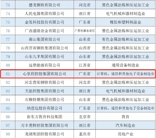 心里程集團(tuán)榮登“2021民營企業(yè)研發(fā)投入500家”榜單第81位