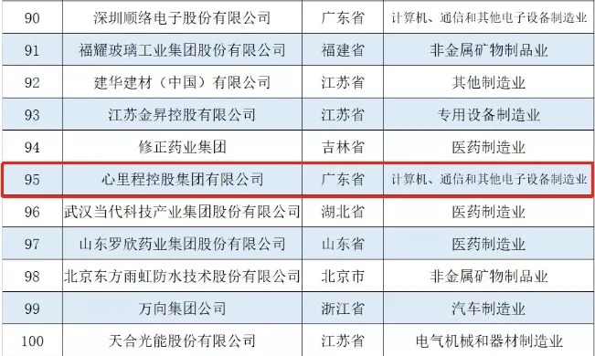 心里程集團(tuán)榮登“2021民營企業(yè)發(fā)明專利500家”榜單第95位
