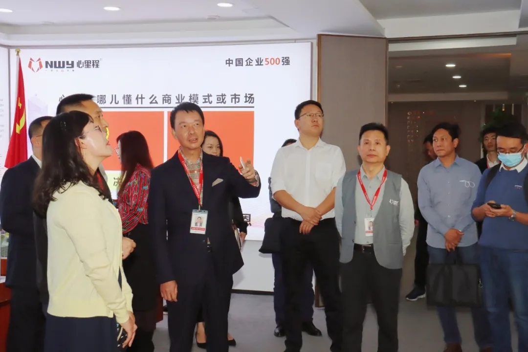 彭錦環(huán)總裁(左五)向孔仙月副市長(zhǎng)(左二)介紹心里程