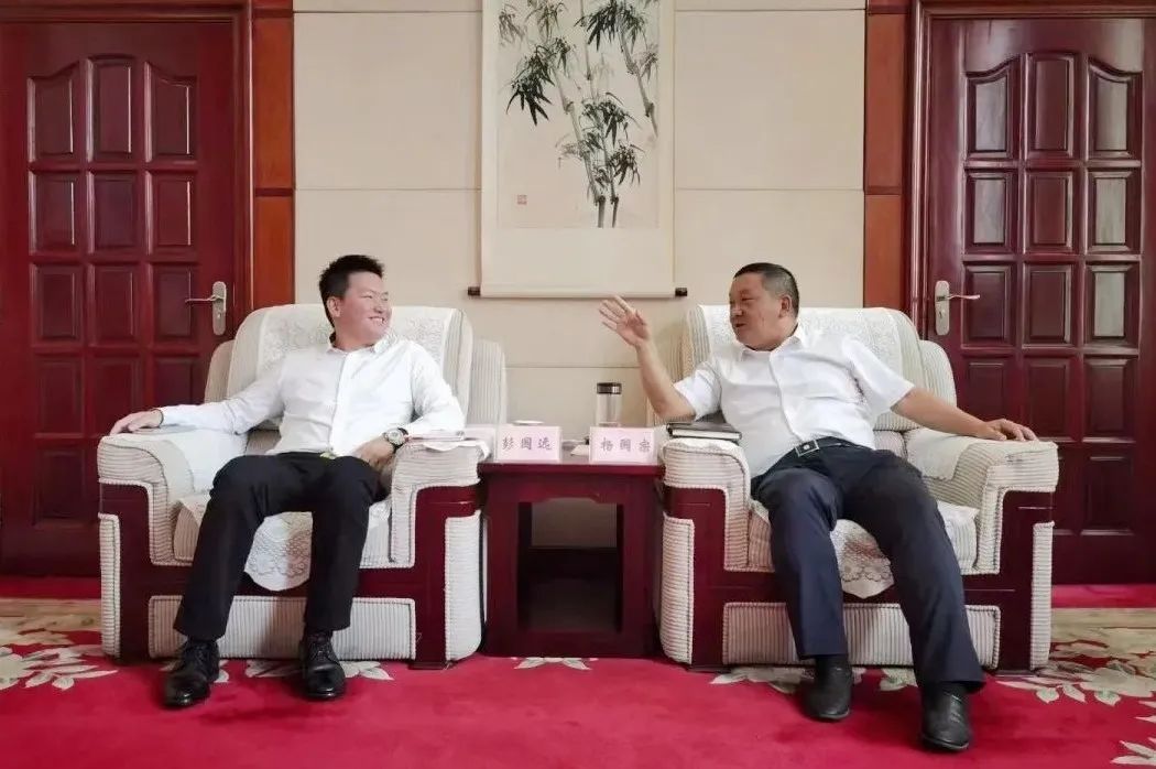 彭國(guó)遠(yuǎn)董事長(zhǎng)(左)與楊國(guó)宗書記(右)座談交流