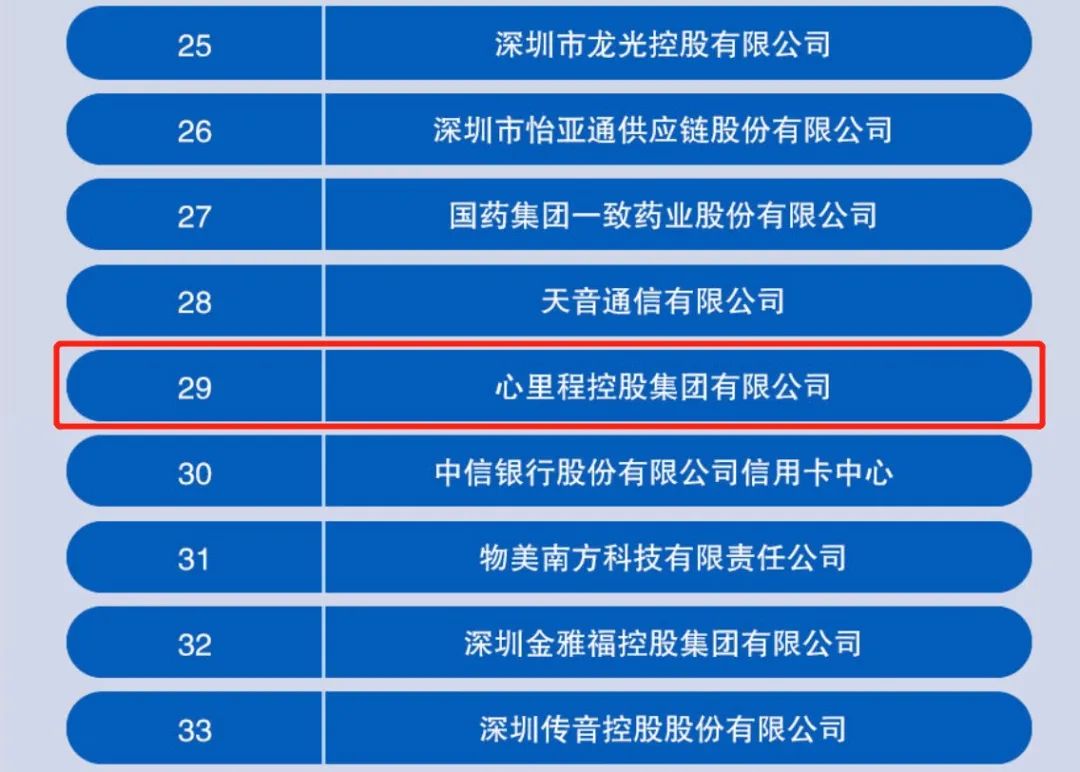 喜訊!心里程集團登榜深圳企業(yè)500強前30(附榜單)