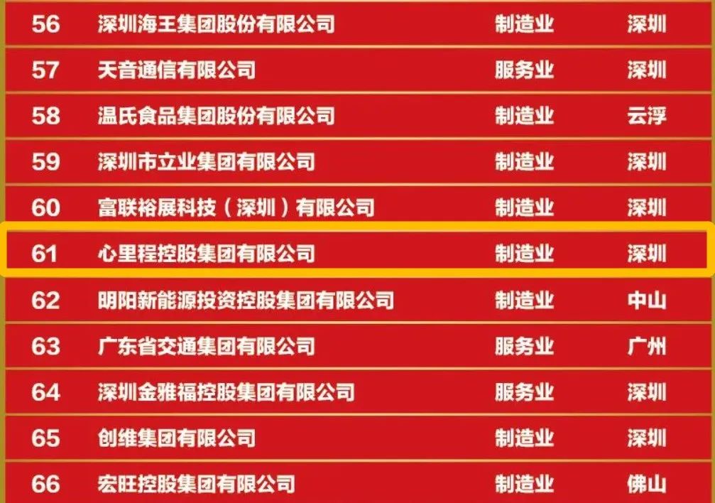 心里程集團(tuán)榮登“2022廣東企業(yè)500強(qiáng)”榜單第61位