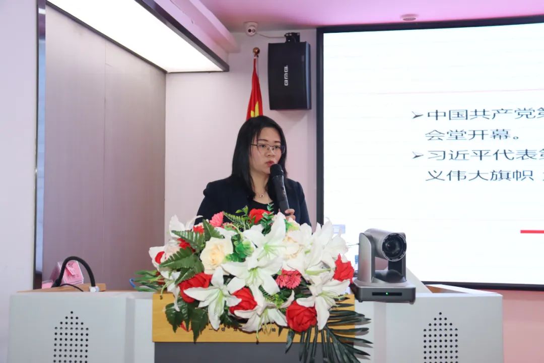 會上,肖丹副教授生動解讀了黨的二十大報告的主要內(nèi)容及精神要點,強調(diào)要深刻認(rèn)識馬克思主義在意識形態(tài)領(lǐng)域的指導(dǎo)地位,并從“大會概況及重要意義”“如何學(xué)習(xí)領(lǐng)悟二十大精神”“貫徹落實二十大精神”等3個方面談起,號召廣大黨員要深入學(xué)習(xí)全會精神,緊密團結(jié)在以習(xí)近平同志為核心的黨中央周圍,維護黨的集中和統(tǒng)一領(lǐng)導(dǎo),建設(shè)具有強大凝聚力和引領(lǐng)力的社會主義意識形態(tài)。她指出,要充分認(rèn)識黨的二十大精神的重大意義,堅持全面系統(tǒng)學(xué)、深入思考學(xué)、聯(lián)系實際學(xué),深刻理解領(lǐng)會報告的精神實質(zhì)和豐富內(nèi)涵,以實際行動忠誠擁護“兩個確立”,增強“四個意識”,堅定“四個自信”,做到“兩個維護”,切實把思想和行動統(tǒng)一到黨的二十大精神上來。