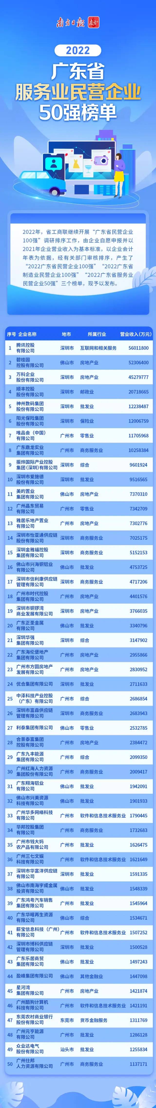 2022廣東省服務業(yè)民營企業(yè)50強