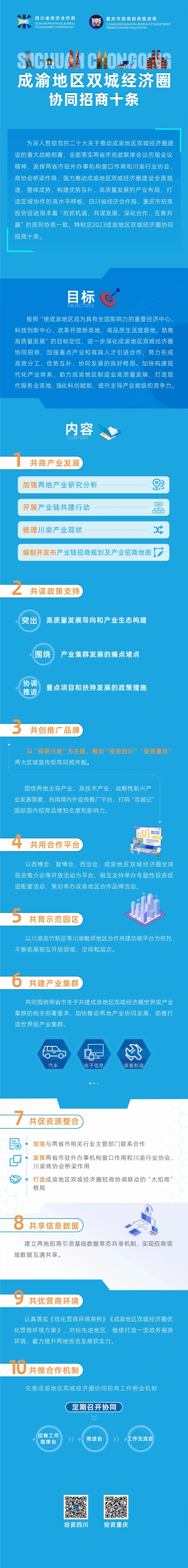 現(xiàn)場(chǎng),川渝兩地經(jīng)濟(jì)合作部門共同對(duì)外推介了智能網(wǎng)聯(lián)新能源汽車、高端裝備、科技創(chuàng)新、電子信息、生物醫(yī)藥、新材料等六大重點(diǎn)產(chǎn)業(yè),發(fā)布了“雙城雙百”產(chǎn)業(yè)機(jī)會(huì)清單及成渝地區(qū)雙城經(jīng)濟(jì)圈協(xié)同招商十條措施。其中,“雙城雙百”產(chǎn)業(yè)機(jī)會(huì)清單為四川和重慶兩地各自包裝推出100個(gè)投資項(xiàng)目,總投資額超過萬億元,涵蓋了四川省六大優(yōu)勢(shì)產(chǎn)業(yè)和部分現(xiàn)代服務(wù)業(yè),以及重慶智能網(wǎng)聯(lián)新能源汽車、高端裝備等優(yōu)勢(shì)產(chǎn)業(yè)。招商十條則瞄準(zhǔn)進(jìn)一步深化雙城經(jīng)濟(jì)圈協(xié)同招商,雙方在共商產(chǎn)業(yè)發(fā)展、共謀政策支持、共用合作平臺(tái)等10個(gè)方面深化合作,努力形成高效分工、優(yōu)勢(shì)互補(bǔ)、協(xié)同發(fā)展良好格局。