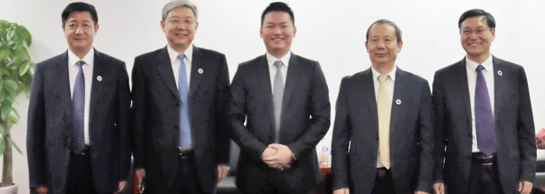 李永華副校長(左一)、李清泉書記(左二)、彭國遠董事長(左三)、毛軍發(fā)校長(左四)、張學(xué)記副校長(左五)合影
