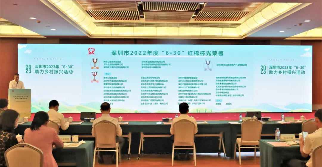 2023年深圳“6·30”活動圍繞“鞏固脫貧成果,助力鄉(xiāng)村振興”主題展開,現(xiàn)場宣讀了深圳市2023年“6·30”助力鄉(xiāng)村振興活動倡議書、深圳市2022年度“6·30紅棉杯”認(rèn)定結(jié)果,愛心企業(yè)、愛心組織等現(xiàn)場踴躍參與“6·30”舉牌認(rèn)捐和消費幫扶舉牌認(rèn)購。市委常委、常務(wù)副市長黃敏,市政協(xié)原主席、市慈善會會長戴北方,市政府副秘書長張晉周,市鄉(xiāng)村振興和協(xié)作交流局局長劉衛(wèi)翔,信義集團(tuán)、騰訊公益慈善基金會、深圳市百合控股集團(tuán)有限公司、心里程控股集團(tuán)有限公司等愛心企業(yè)及社會團(tuán)體代表參加此次活動。