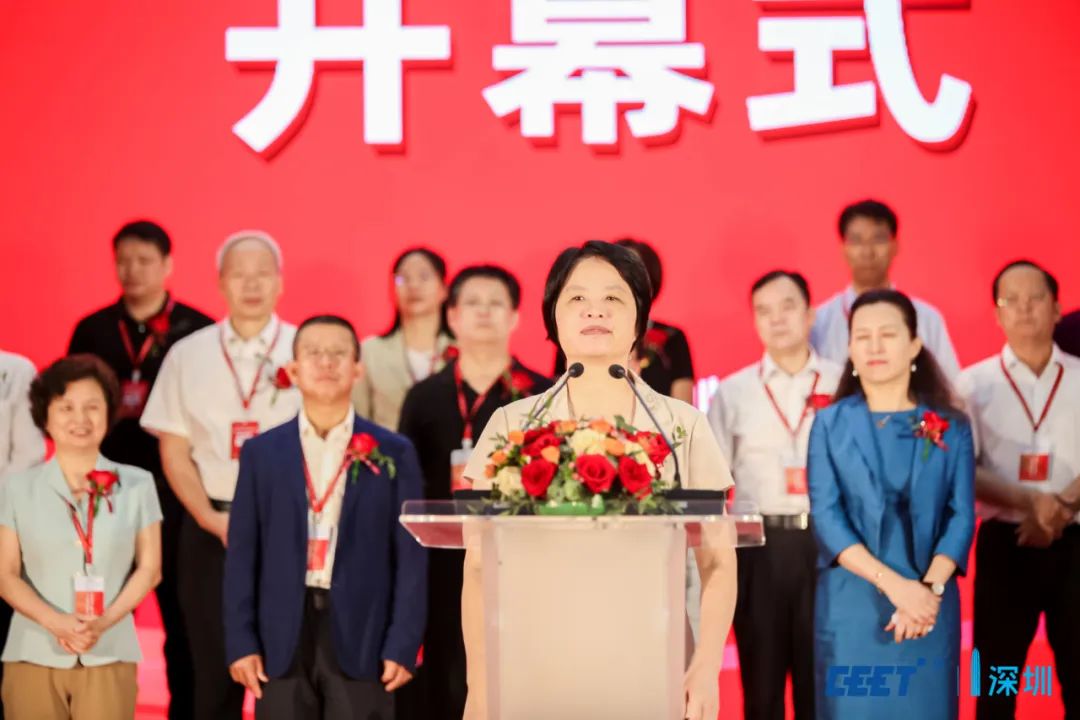 心里程控股集團董事·總裁、深圳市教育裝備行業(yè)協(xié)會會長彭錦環(huán)為開幕式致辭