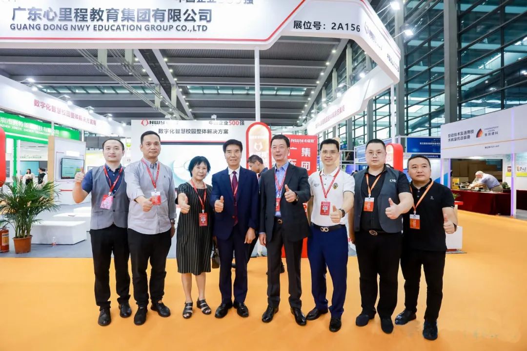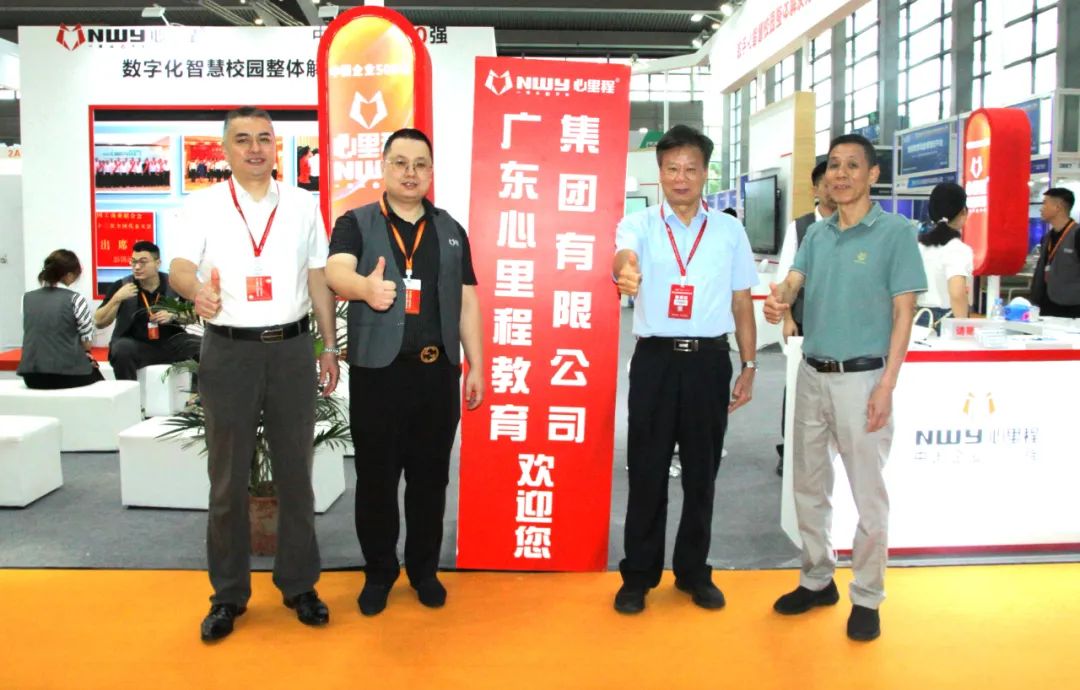 教育部關(guān)心下一代工作委員會常務(wù)副主任、中國教育裝備行業(yè)協(xié)會專家委員會主任王富(左四)蒞臨心里程展位參觀指導(dǎo)