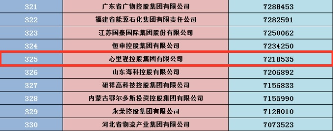 心里程集團(tuán)榮登“2023中國企業(yè)500強(qiáng)”榜單第325位