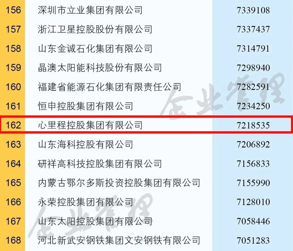 心里程集團(tuán)榮登“2023中國制造業(yè)企業(yè)500強(qiáng)” 榜單第162位