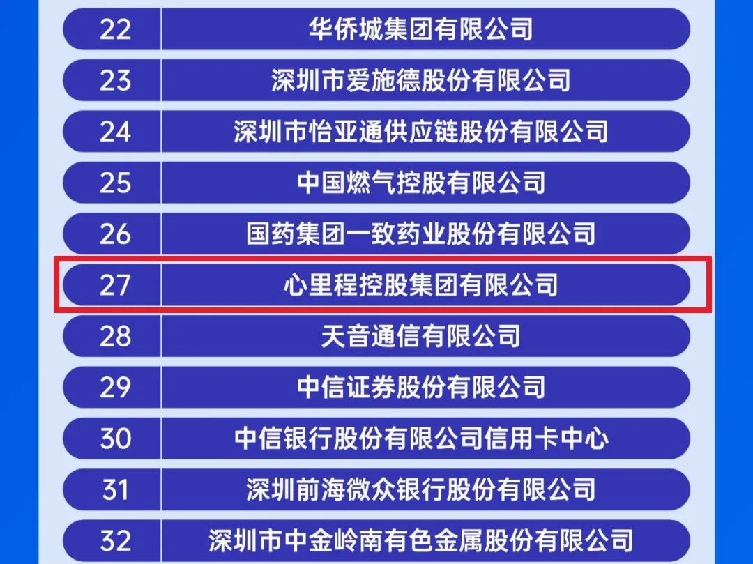 9月25日,深圳市企業(yè)聯(lián)合會(huì)、深圳市企業(yè)家協(xié)會(huì)(簡(jiǎn)稱深圳企聯(lián))正式發(fā)布“2023深圳企業(yè)500強(qiáng)榜單”及《2023深圳500強(qiáng)企業(yè)發(fā)展報(bào)告》。心里程控股集團(tuán)入選“2023深圳500強(qiáng)企業(yè)”第27位,較2022年上升2位,充分凸顯了心里程集團(tuán)強(qiáng)勁的綜合實(shí)力及品牌影響力。
