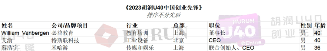 2023胡潤U40中國創(chuàng)業(yè)先鋒