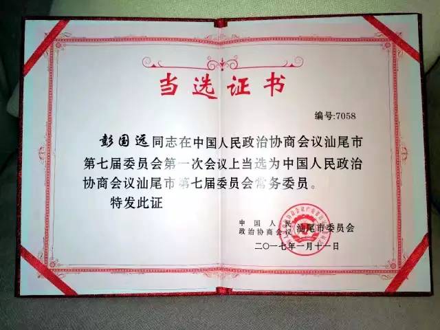1月11日,中國(guó)人民政治協(xié)商會(huì)汕尾市第七屆委員會(huì)第一次會(huì)議順利閉幕,【心里程集團(tuán)】董事長(zhǎng)彭國(guó)遠(yuǎn)連任汕尾市政協(xié)常務(wù)委員。1月7日,彭國(guó)遠(yuǎn)董事長(zhǎng)當(dāng)選政協(xié)第七屆河源市委員會(huì)常務(wù)委員。