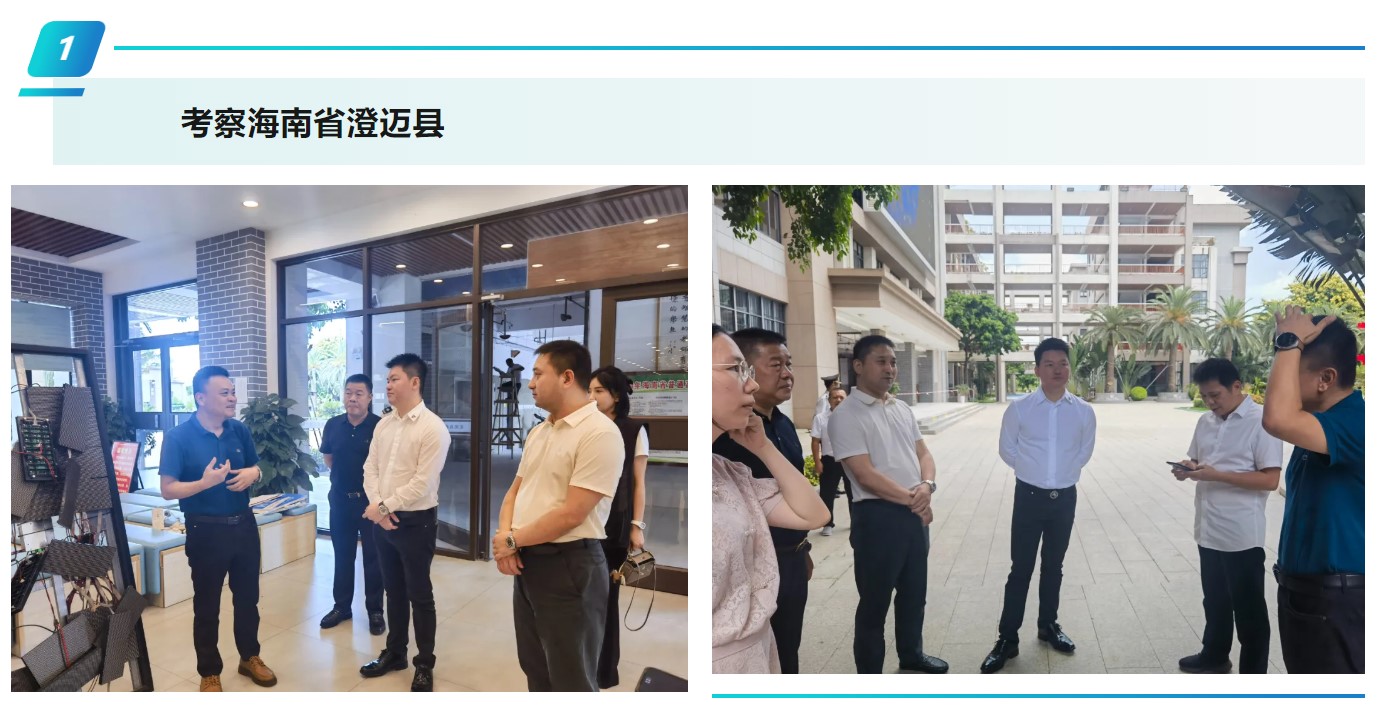 8月1日,彭國遠(yuǎn)董事長、杜登高副董事長等前往海南省澄邁縣考察交流,受到澄邁縣委書記盛勇軍、副縣長王上明等領(lǐng)導(dǎo)的熱情接待。考察期間,在相關(guān)領(lǐng)導(dǎo)陪同下,彭國遠(yuǎn)董事長一行實(shí)地考察了澄邁縣老城鎮(zhèn)科技新城、華東師范大學(xué)澄邁實(shí)驗(yàn)中學(xué)、ischool海南微城未來學(xué)校等地,雙方就相關(guān)合作事宜在老城科技新城管委會(huì)組織座談交流。