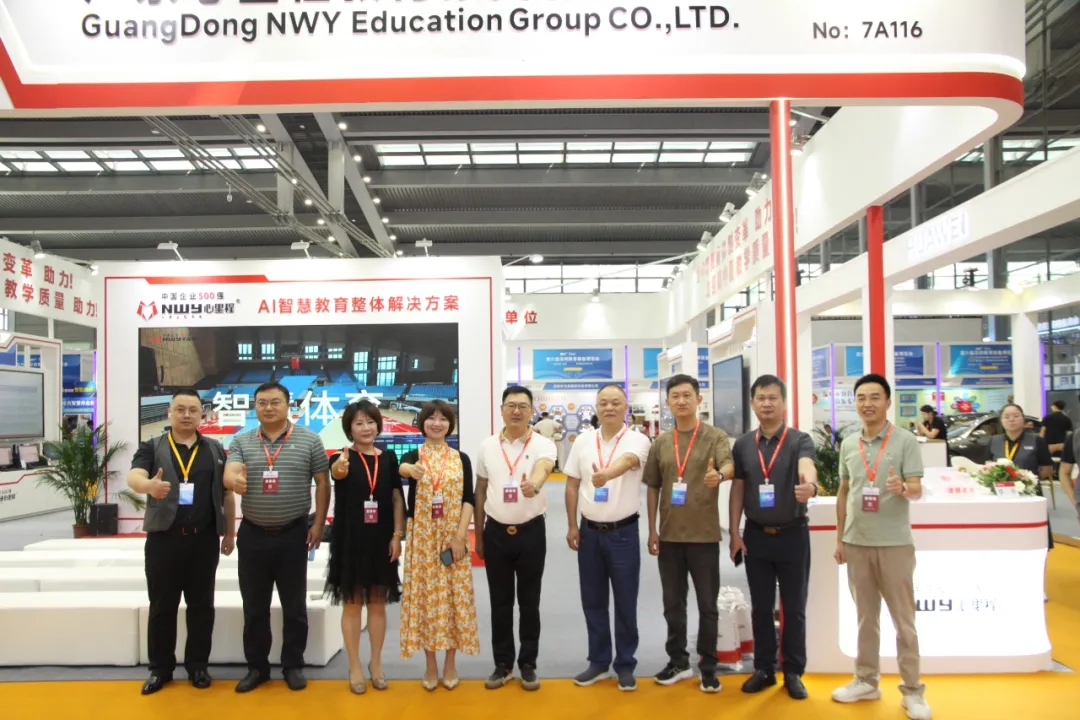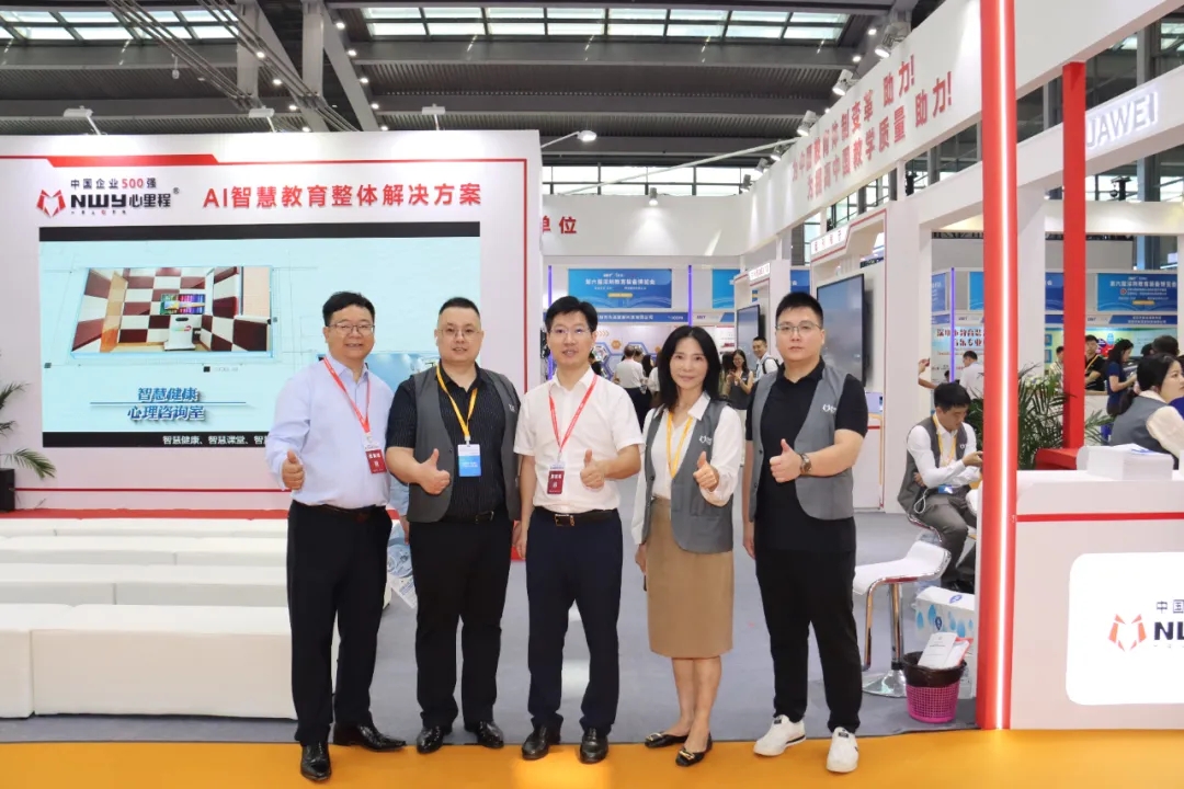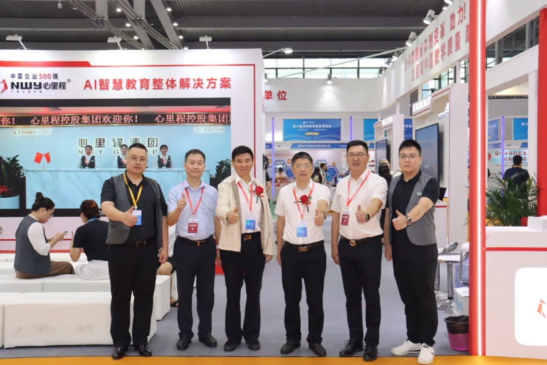 四川省教育裝備行業(yè)協(xié)會(huì)會(huì)長(zhǎng)張林祥(左三)蒞臨心里程展位參觀指導(dǎo)
