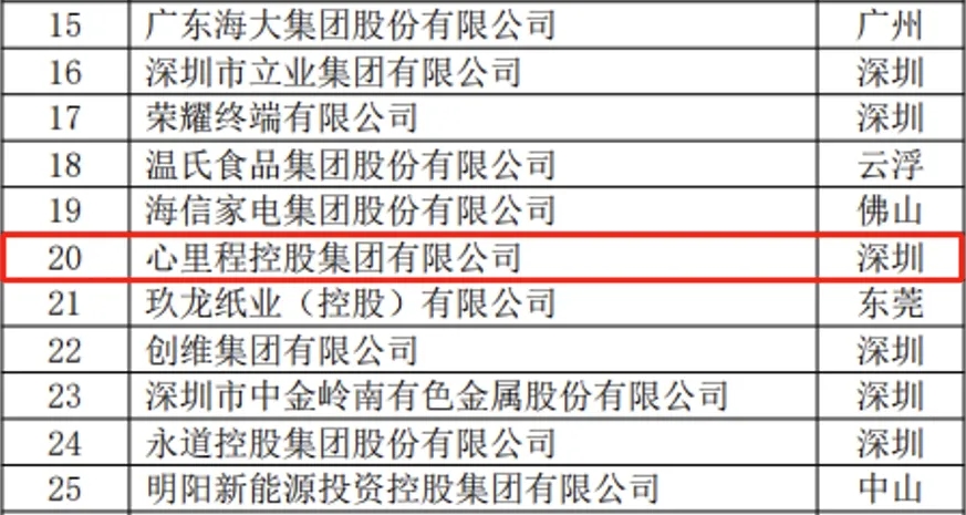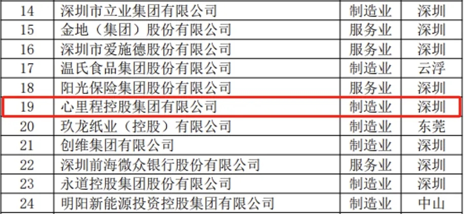 心里程集團榮登“2024廣東民營企業(yè)100強”榜單第19位