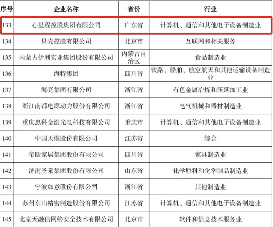 近日,2024全國民營企業(yè)科技創(chuàng)新與標準創(chuàng)新大會暨全國知名民企助力創(chuàng)新龍江建設大會在哈爾濱舉行。會議由全國工商聯(lián)、黑龍江省人民政府主辦,以“加快形成新質生產(chǎn)力、激發(fā)龍江振興新動能”為主題,發(fā)布了2024研發(fā)投入前1000家民營企業(yè)創(chuàng)新狀況報告(以下簡稱《報告》)和民營企業(yè)研發(fā)投入、發(fā)明專利榜單。心里程集團榮登2024民營企業(yè)研發(fā)投入500家第60位;2024民營企業(yè)發(fā)明專利500家第133位,這也是心里程集團連續(xù)第四年榮登該榜單,彰顯了公司在技術創(chuàng)新和知識產(chǎn)權保護領域的強勁實力。