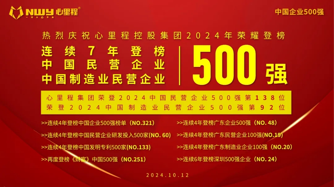心里程集團(tuán)榮登2024中國(guó)制造業(yè)民營(yíng)企業(yè)500強(qiáng)第92位