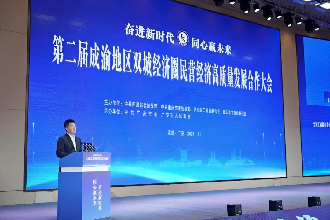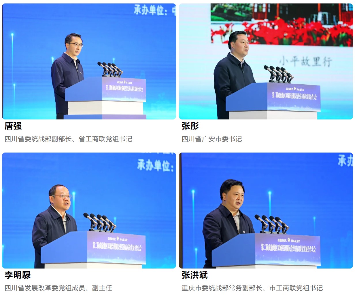 本次大會(huì)由中共四川省委統(tǒng)戰(zhàn)部、中共重慶市委統(tǒng)戰(zhàn)部、四川省工商業(yè)聯(lián)合會(huì)、重慶市工商業(yè)聯(lián)合會(huì)共同主辦,中共廣安市委、廣安市人民政府承辦。大會(huì)以“奮進(jìn)新時(shí)代 同心贏(yíng)未來(lái)”為主題,聚焦智能裝備、電子信息、生物醫(yī)藥等前沿產(chǎn)業(yè),廣邀川渝乃至全國(guó)的民營(yíng)經(jīng)濟(jì)力量協(xié)同發(fā)展、合作共贏(yíng)。川渝兩省市黨委統(tǒng)戰(zhàn)部有關(guān)負(fù)責(zé)人、相關(guān)市州(區(qū)、縣)黨委統(tǒng)戰(zhàn)部及工商聯(lián)主要負(fù)責(zé)人、有關(guān)商協(xié)會(huì)負(fù)責(zé)人、民營(yíng)企業(yè)家代表等近400人參加。心里程控股集團(tuán)創(chuàng)始人?董事長(zhǎng)彭國(guó)遠(yuǎn)受邀出席活動(dòng)并作為代表發(fā)言。