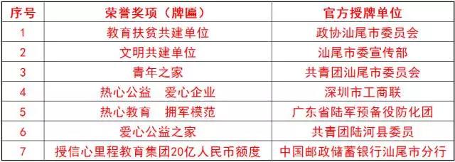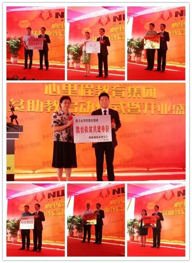 活動舉行了隆重的授牌儀式。政協(xié)汕尾市委員會授予心里程教育集團(tuán)“教育扶貧共建單位”,汕尾市委宣傳部授予心里程教育集團(tuán)“文明共建單位”,共青團(tuán)汕尾市委員會授予心里程教育集團(tuán)“青年之家”,深圳市工商聯(lián)授予心里程教育集團(tuán)“熱心公益 愛心企業(yè)”,廣東省陸軍預(yù)備役防化團(tuán)授予心里程教育集團(tuán)“熱心教育 擁軍模范”,共青團(tuán)陸河縣委員會授予心里程教育集團(tuán)“愛心公益之家”,中國郵政儲蓄銀行汕尾市分行授信心里程教育集團(tuán)“20億人民幣額度”。