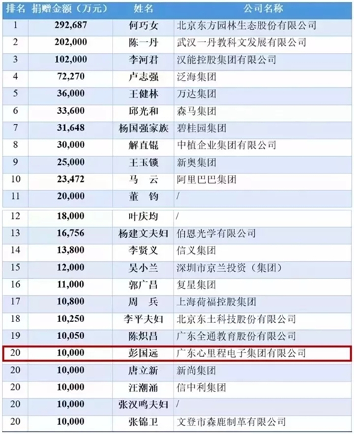 ▲“2015中國捐贈(zèng)百杰榜”前20名