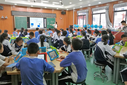 活動(dòng)中,七年級(jí)的英語(yǔ)老師通過借助心里程“互聯(lián)e課堂”與學(xué)生進(jìn)行了互動(dòng)教學(xué)。動(dòng)態(tài)開放的課堂模式、積極活躍的課堂氣氛、云平臺(tái)及平板等豐富的智慧元素……讓家長(zhǎng)們真正感受到了在英語(yǔ)教學(xué)中“智慧課堂”的優(yōu)勢(shì),以及智慧課堂的高效與趣味性。