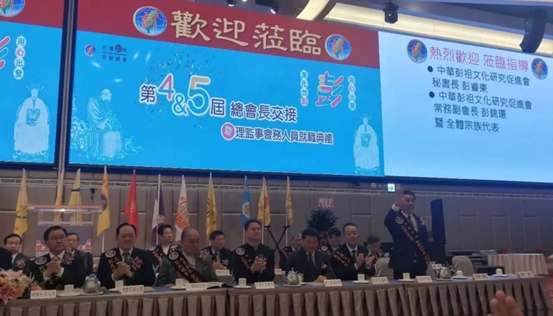 3月31日,心里程教育集團(tuán)總裁彭錦環(huán),作為中華彭祖文化研究促進(jìn)會(huì)常務(wù)副會(huì)長(zhǎng),應(yīng)邀前往臺(tái)灣參加參加臺(tái)灣彭姓宗親總會(huì)第4&5屆總會(huì)長(zhǎng)交接暨理監(jiān)事會(huì)務(wù)人員就職典禮和臺(tái)灣新北市彭姓宗親會(huì)第八、九屆理事長(zhǎng)交接暨理監(jiān)事、會(huì)職員就職典禮。