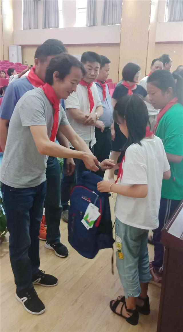 安徽心里程副總經(jīng)理崔強代表公司向?qū)W生捐贈現(xiàn)金、書包等