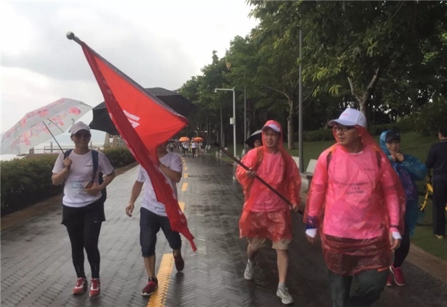 在活動(dòng)過程中,由于天公不作美,大雨小雨接連不斷,心里程集團(tuán)的員工全身衣服鞋子都濕透了,腳都磨破皮了,但他們沒有一句怨言,一路歡聲笑語,從起點(diǎn)一直堅(jiān)持到終點(diǎn),完成了徒步的全過程。