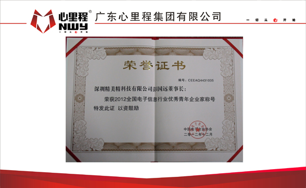 此次頒獎典禮上,深圳精美精科技有限公司董事長彭國遠先生由國家發(fā)改委的領(lǐng)導(dǎo)和國家工信部領(lǐng)導(dǎo)親自頒發(fā)2012“牡丹杯”《全國電子信息行業(yè)優(yōu)秀企業(yè)家》榮譽獎。