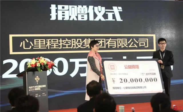 ▲2017年12月,心里程集團(tuán)應(yīng)邀出席“2017中華企業(yè)社會責(zé)任高峰論壇”,并向深圳市慈善會捐贈2000萬元