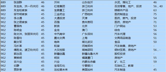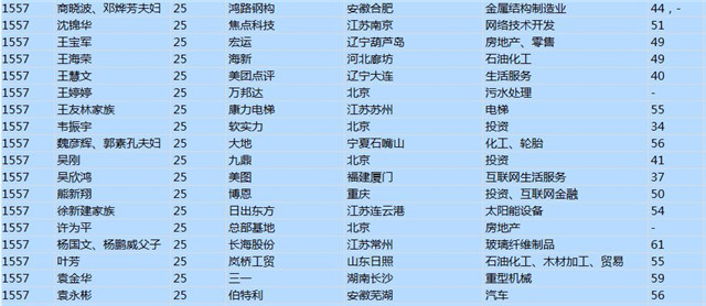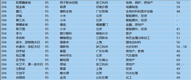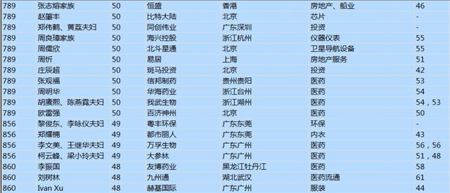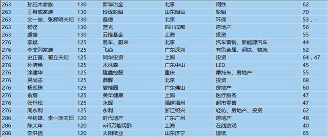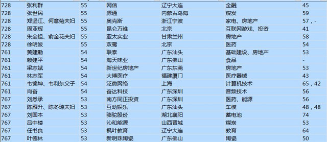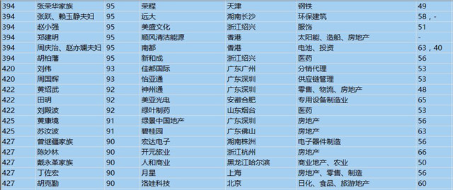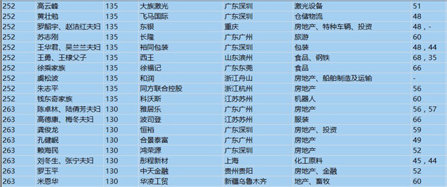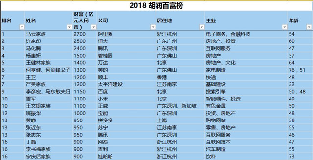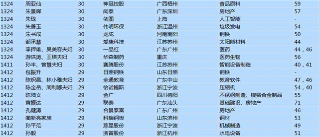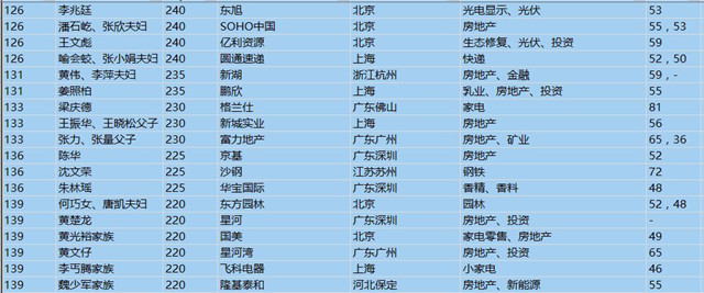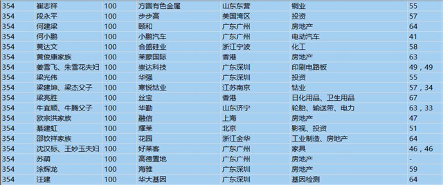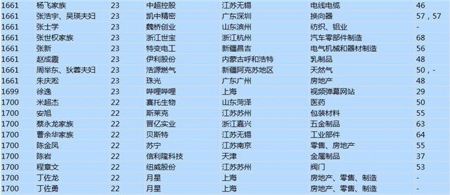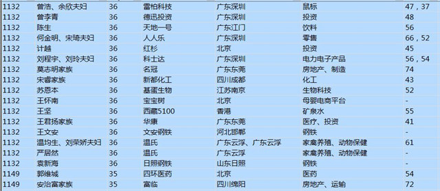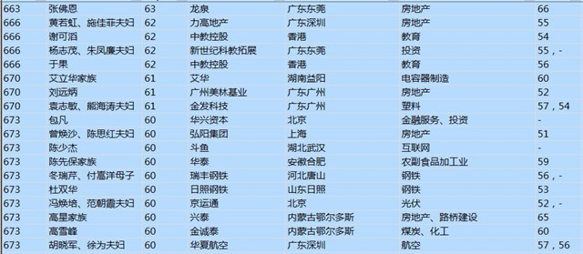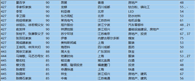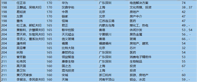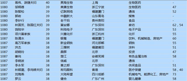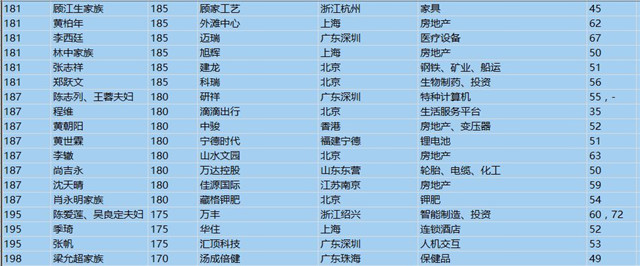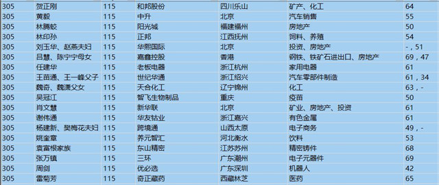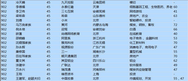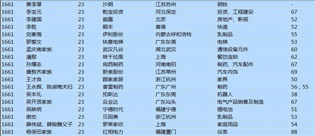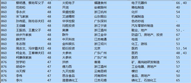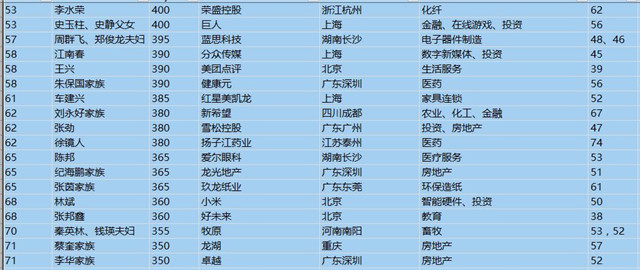 (以下是胡潤百富榜部分富豪名單)