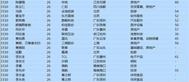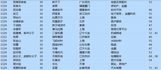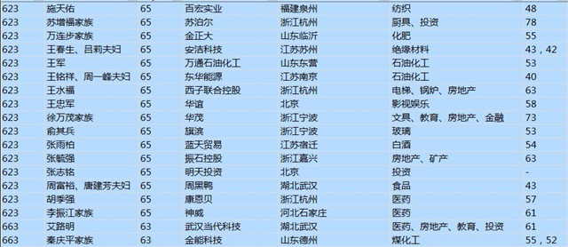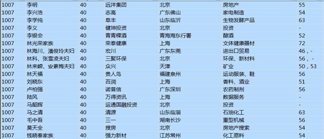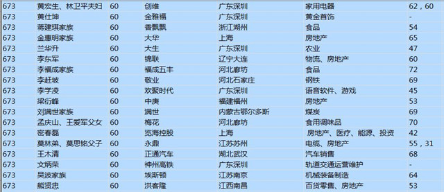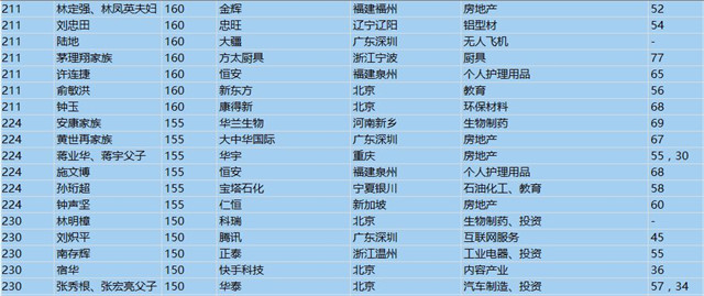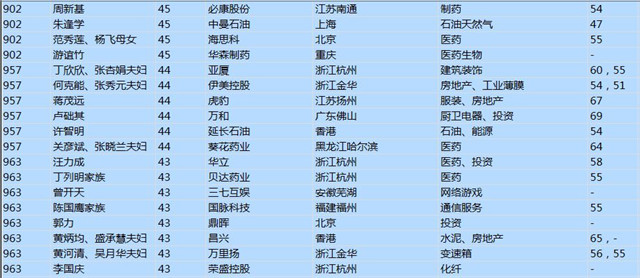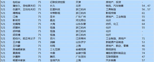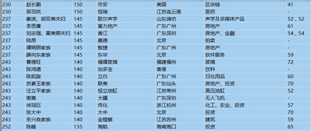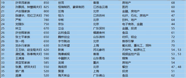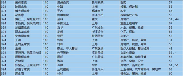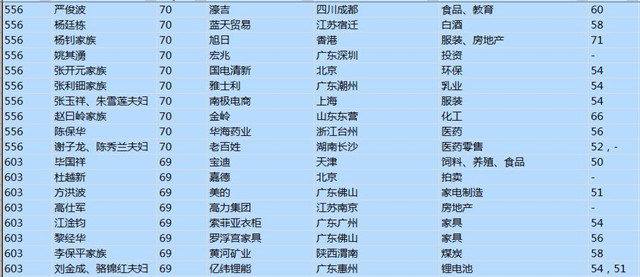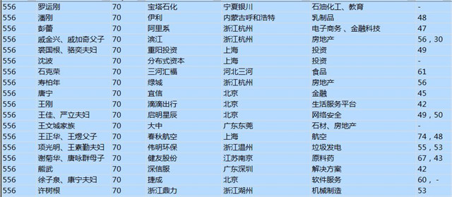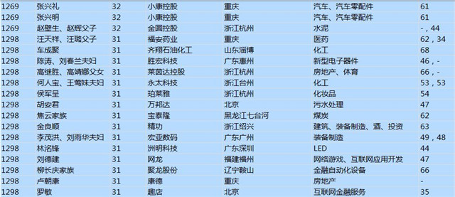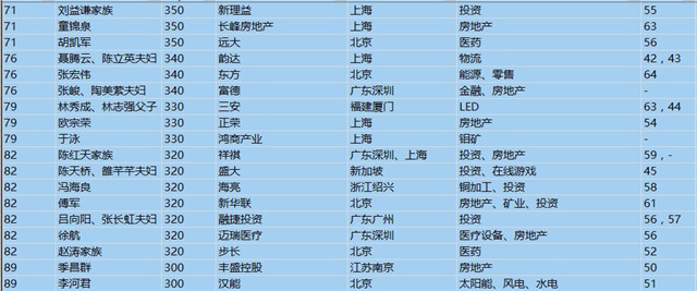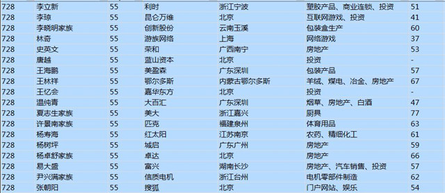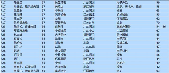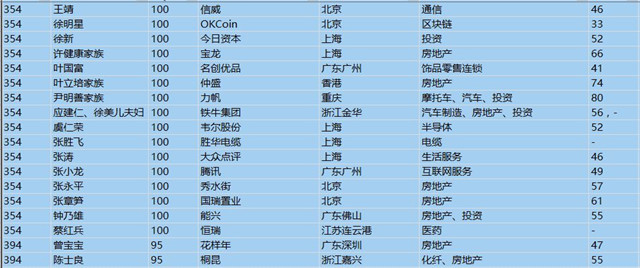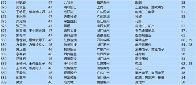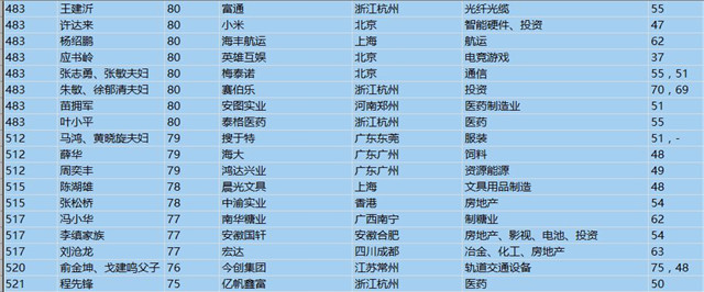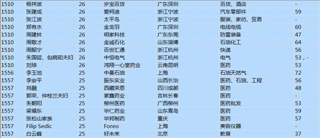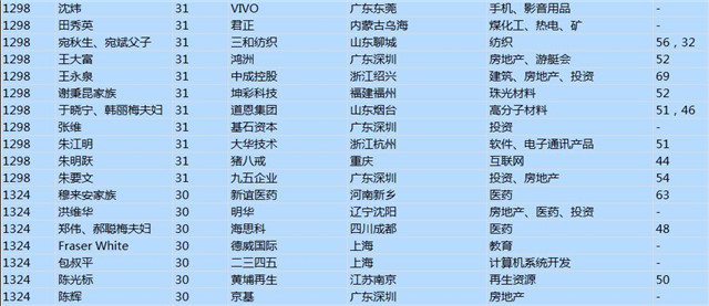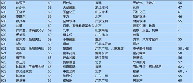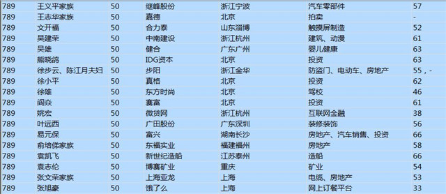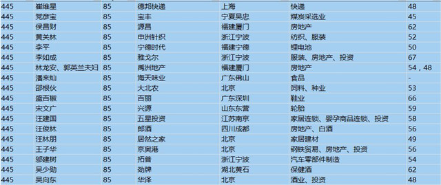 (以下是胡潤百富榜部分富豪名單)