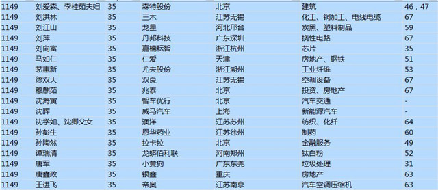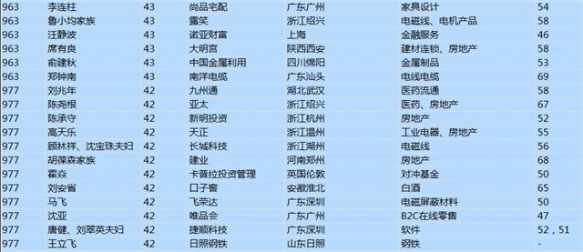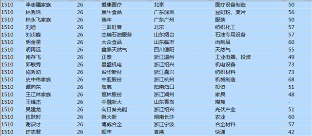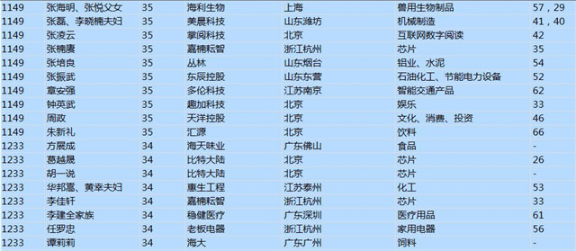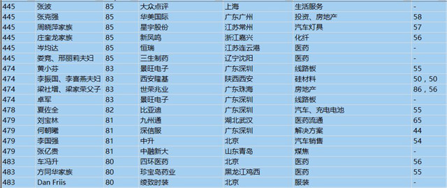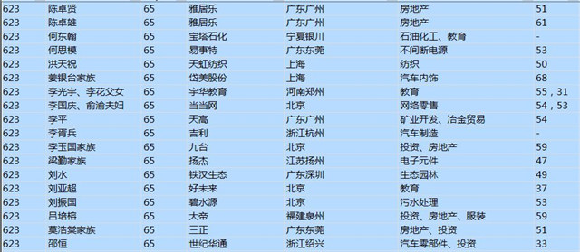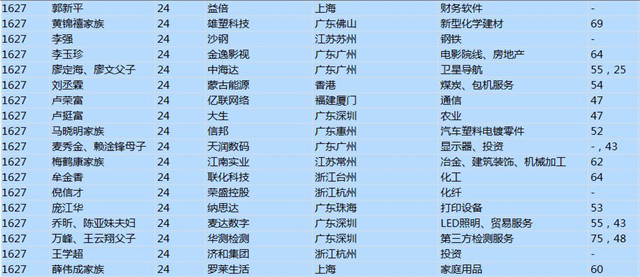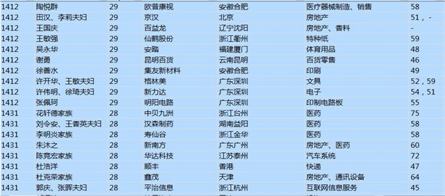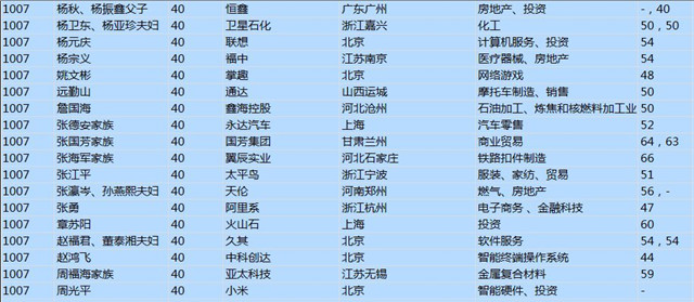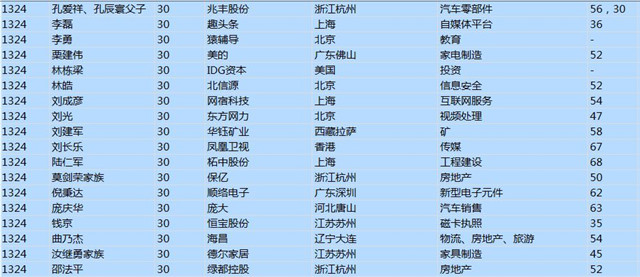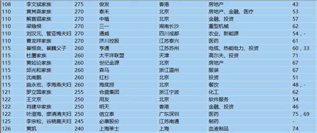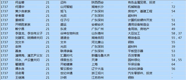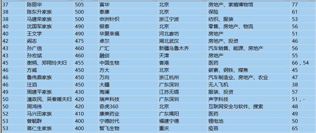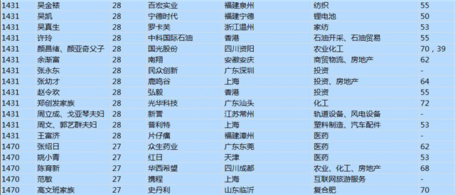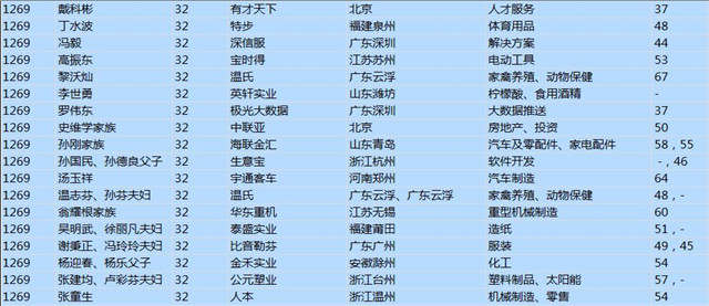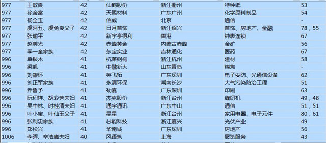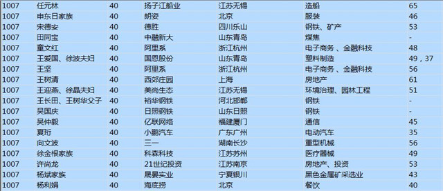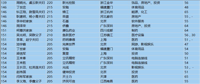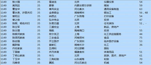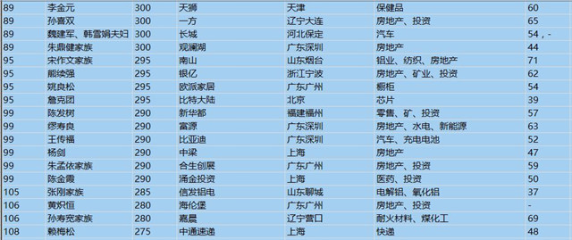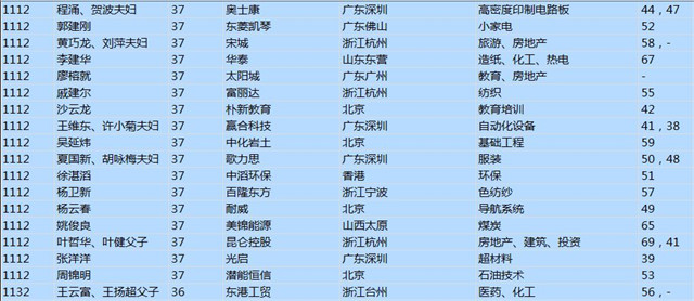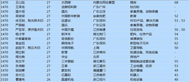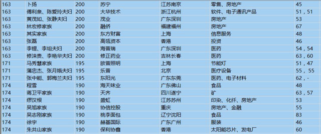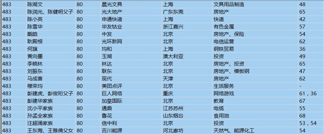 (以下是胡潤百富榜部分富豪名單)