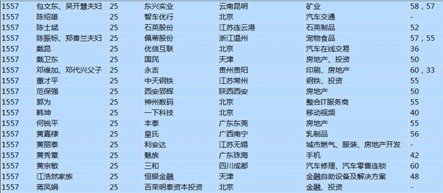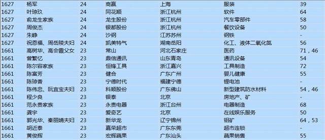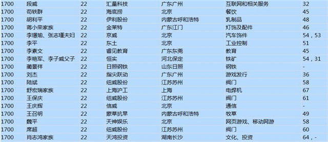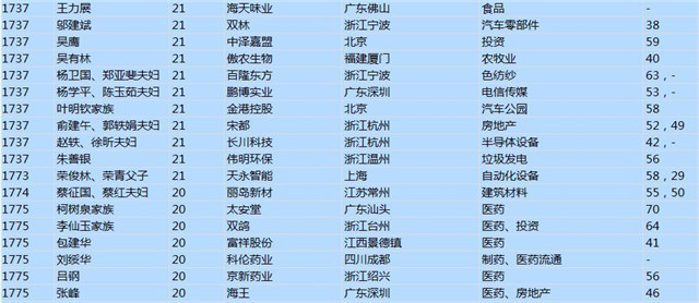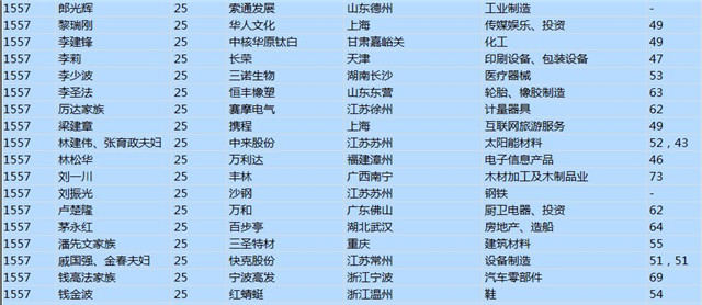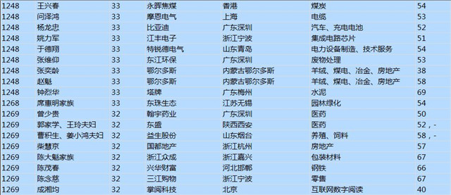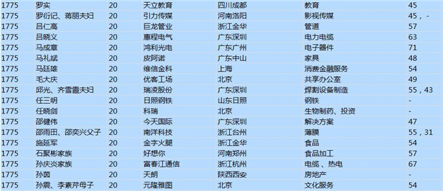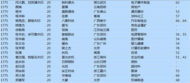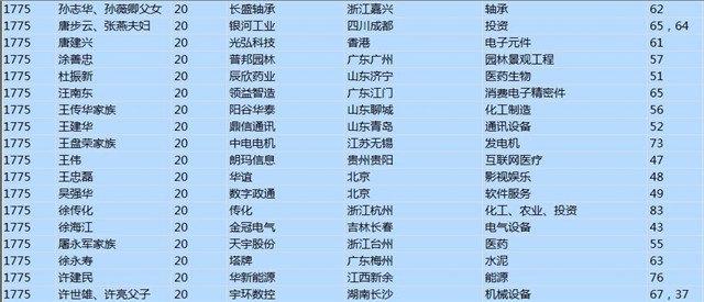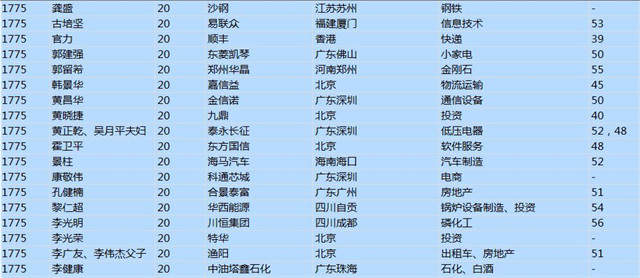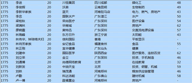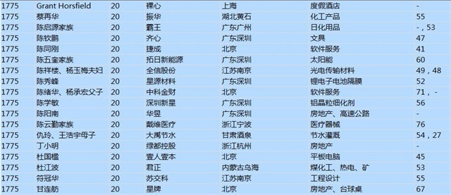 今年共有1893位企業(yè)家財富超過20億