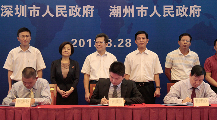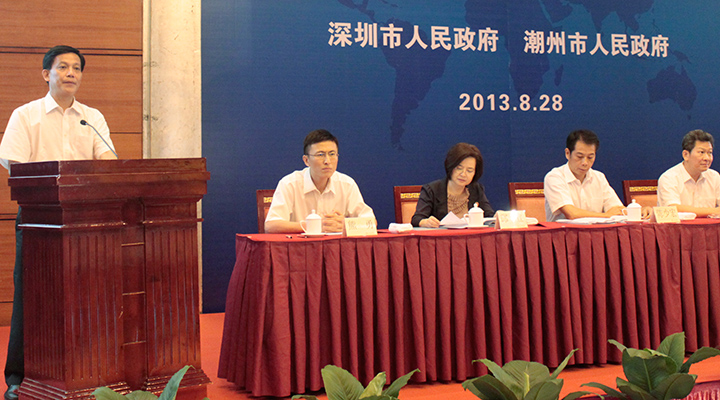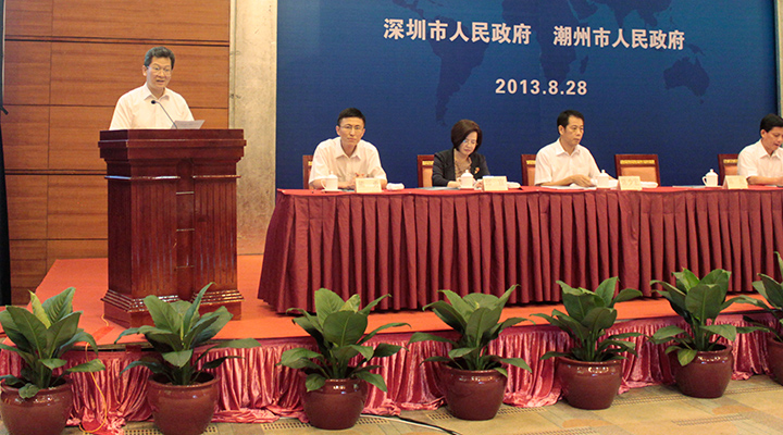 8月28日,2013年深圳(潮州)產(chǎn)業(yè)轉(zhuǎn)移工業(yè)園項目簽約儀式暨招商推介會在深圳五洲賓館舉行,深圳市陳彪副市長,潮州市李慶雄市長等領(lǐng)導(dǎo)出席并做講話,心里程集團(tuán)彭國遠(yuǎn)董事長作為簽約企業(yè)代表出席簽約。