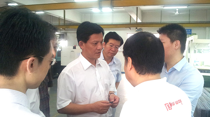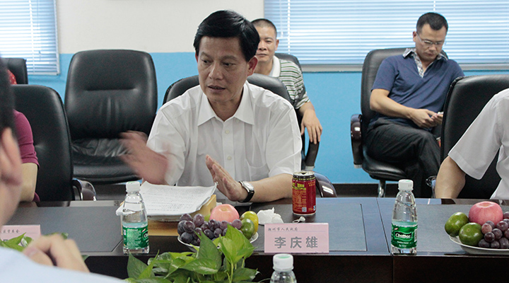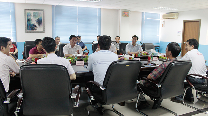 在出席完會議后廣東省潮州市人民政府市長李慶雄、陳少宏副市長、市開發(fā)區(qū)黨工委書記張時義等一行領(lǐng)導(dǎo)蒞臨集團(tuán)深圳生產(chǎn)廠區(qū)現(xiàn)場調(diào)研。