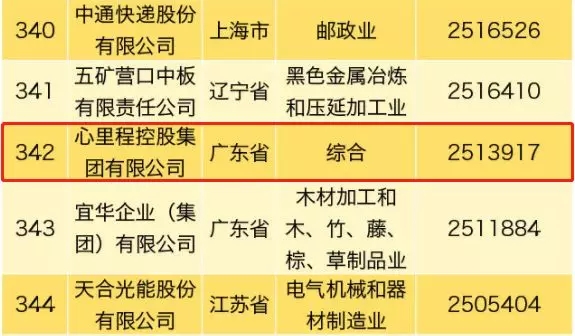據(jù)悉,今年中國民營企業(yè) 500 強入圍門檻高達 185.86 億元。榜單顯示,心里程控股集團以2513917萬元榮登榜單第342位 ,獲得了中國民營企業(yè)的至高榮譽,集團未來舞臺更加廣闊。
